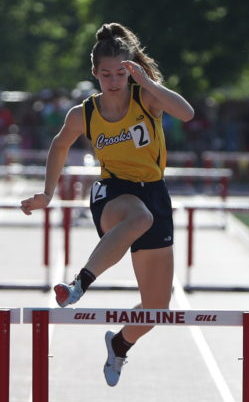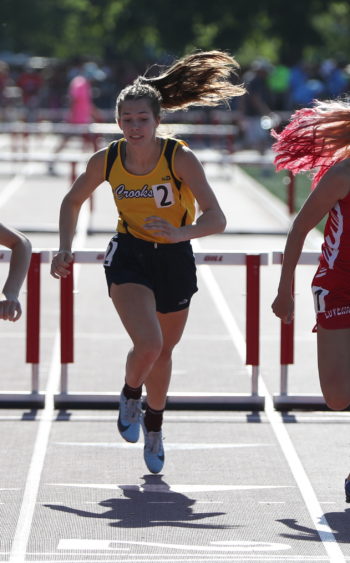 Emma Borowicz ran the 300-meter hurdles in 46.70 seconds for a new personal best. Borowicz time was fifth fastest in heat one but proved to be the seventh fastest overall time earning her a spot in the finals Saturday at 6:12 p.m. “She had her personal best today, and that’s really what we ask for,” explained Crookston head coach Amy Boll. “She’ll be in seventh going into (the finals), so she did a fantastic job. Her race looked really good. I know that when she came over the last hurdles, she hit the last one and stuttered a little bit. I know she’s going to do very well tomorrow. I’m so excited to watch her. She’s a strong athlete. She’s mentally and physically strong. She’s mentally driven, and she’s calm. She puts everything out there.” Emma Borowicz was equally pleased with her performance in the prelims. “Everything started really good,” noted Borowicz. “My hurdles were definitely a lot smoother than they have been in the last few races I’ve run. I just kind of nicked it in the end in the last 10 meters and was trying to catch my step, otherwise, I ran it exactly as I wanted to. Having people to push me there helped a lot. I still have more that I can do and I’m hoping that I can do it all tomorrow.”