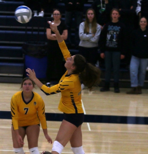 The Titans and Pirates would tie at 1, 2, and 3 before Tweten got a kill to give the Titans a one-point lead and followed that up with an ace to go up 5-3. Emma LaPlante would get a kill for the Pirates to pull within one, but Klemetson got back-to-back kills, and the Titans got another point to go up 8-4, forcing an early timeout from Crookston. The Pirates pulled within three at 9-6, but the Titans went on an 8-0 run to open up a 17-6 lead. Crookston would win the following three points to make it 17-9. After the two teams traded points, Brenna Olson would get a kill that sparked a 6-0 run for the Titans to win the set 25-11.