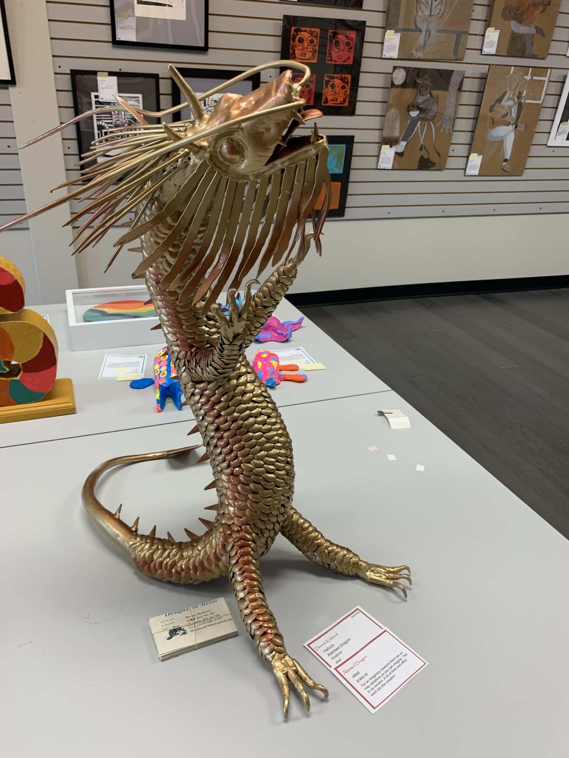 3rd Place $200 Dennis Kinkead of Hallock in sculpture “Alarmed Dragon”