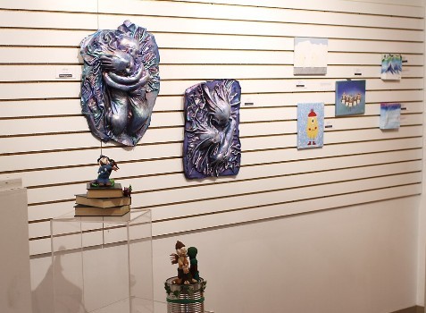 Artists with work in this exhibit include Katelyn Crowe of Warroad: Cloth Mache Dragons Series, Kendra Olson of Thief River Falls: Character series, Jodi Peterson of Ada: Glass Ornaments, Shantelle Carey of Thief River Falls: An Individual Exploration of Spirituality (rabbit skin) and her “Bean” series, Heather Sabian of Crookston: Leather Sculpture Series, and Lia Hanson of Thief River Falls – Joys of Ember, Loren Younggren – Winter Photography Scenes, & Coby Skjerven – Wee Folk Sculptures.