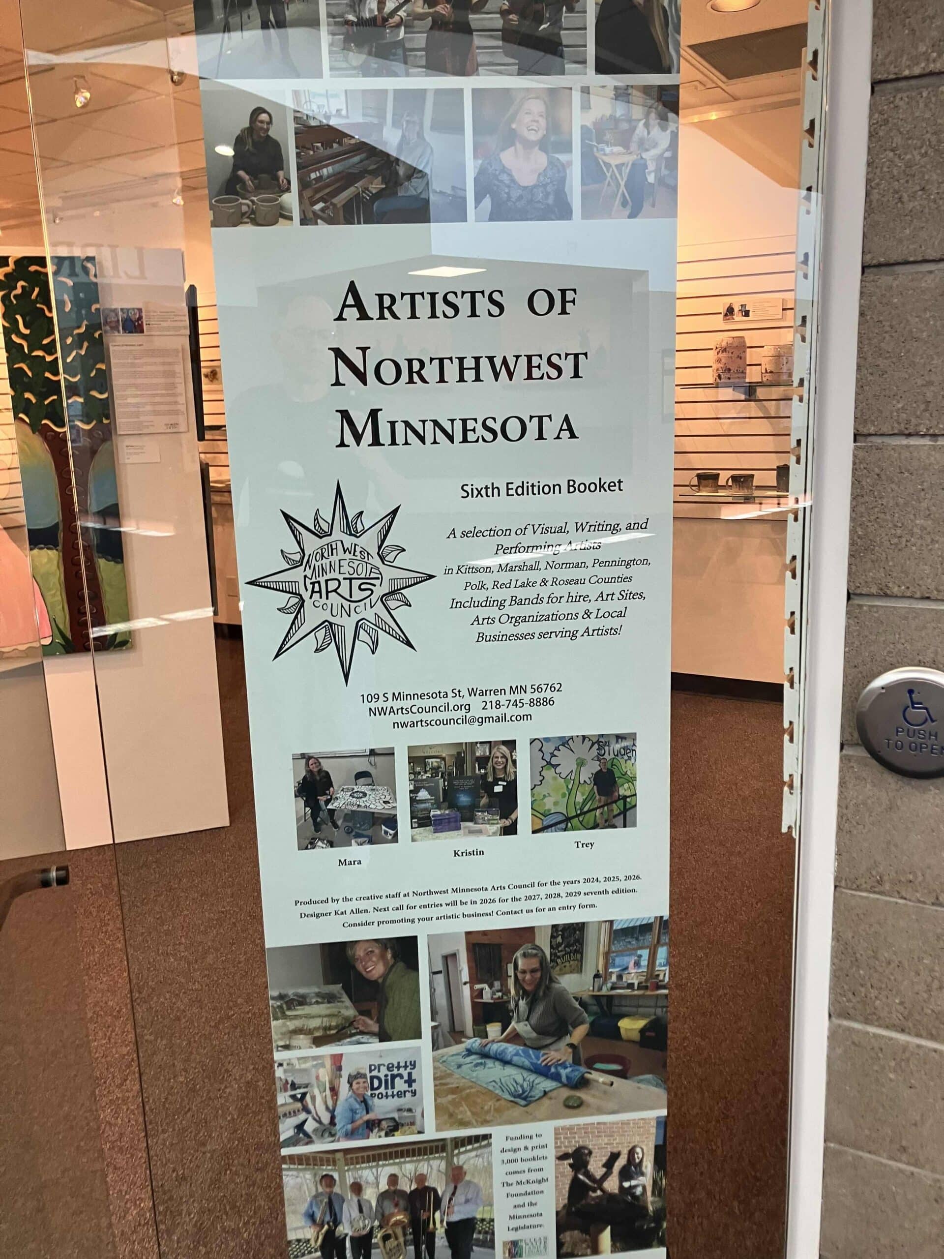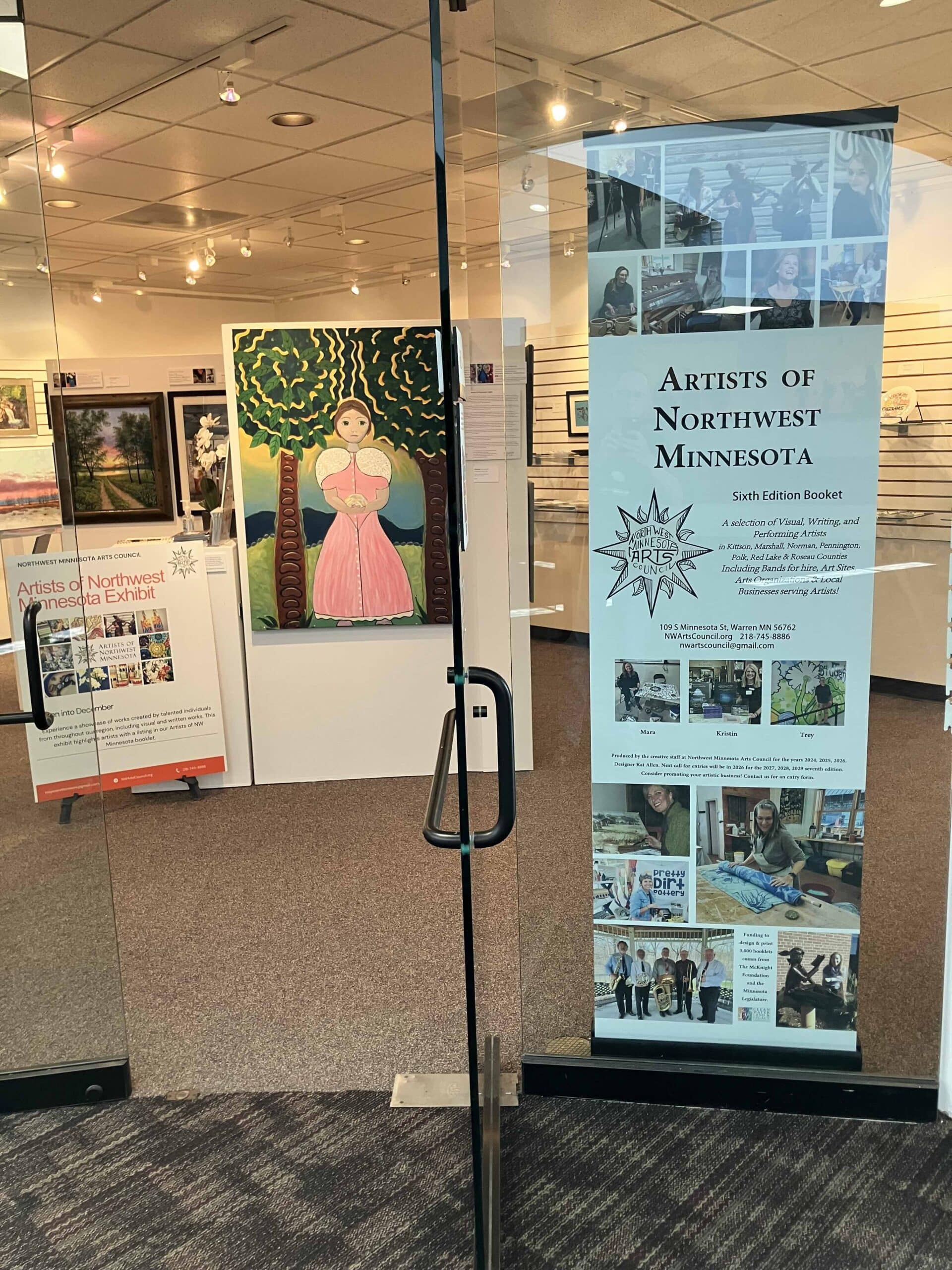 Artists featured in the exhibit include Kat Allen of Warroad, Beau Bakken of Hallock, Rock Bakken of Hallock, Debbie Dahl Aune of Gatzke, Paulette Christianson of Badger, Ross Harper Hier of Crookston, Kristin Eggerling of Hallock, Trey Everett of Crookston, Christine Foster of Thief River Falls, Therese Jacobson of Alvarado, Jesscia Lundeen of  Thief River Falls, Cindy Kolling of Gully, Elizabeth Kitchell-Rockstad of Ada, Gail Ose of Thief River Falls, Jodi Peterson of Ada and Moorhead, Ivy Bailie of Fosston, Megan Sugden of Hallock, Betsy Saurdiff of Goodridge, and Samantha Thibert of Warroad.