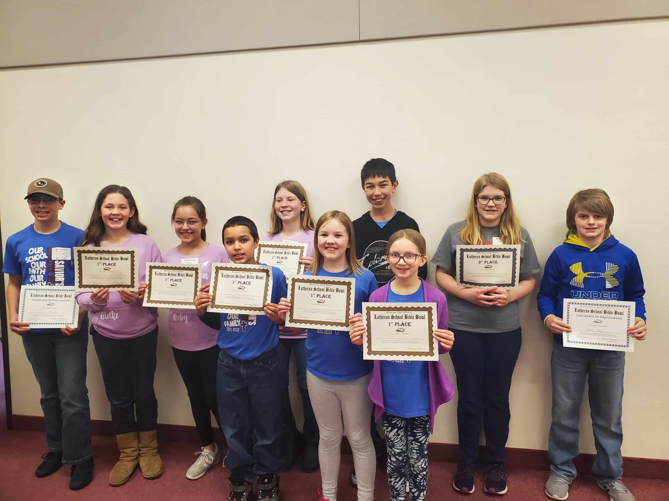 Students from Our Savior’s Lutheran School competed in a northern Minnesota Lutheran Schools’ Bible Bowl competition at Immanuel Lutheran School, Walker, MN, on Saturday, March 5.
