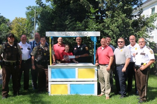 Members of the police department, fire department, and sheriff’s office stopped by Berg’s lemonade stand this week for the Ox Cart Days contest to thank him for his donation. Crookston Fire Chief Tim Froeber said it was an appreciated donation. “We really want to thank you,” said Froeber. “And we very much appreciate the donation that you gave to the fire department, police department, and the sheriff’s department. That’s very noble of you to think of us in these times of need.”