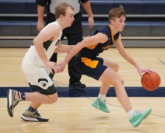 Frazee had the hot hand at the start with a pair of three-pointers. The first one came from Alexander Helmers, and the second was by Asher Blaine for a 6-0 lead one minute into the game. Crookston answered with baskets from Hunter Nicholas and Caden Boike. Frazee took a 12-6 lead before Crookston started to get things going offensively. The Pirates responded with a 13-2 run with the first eight points scored by Tyler Michaelson, Reggie Winjum added three points, and Caden Boike added two for a 19-14 lead with 6:44 left in the half.