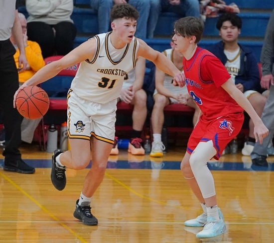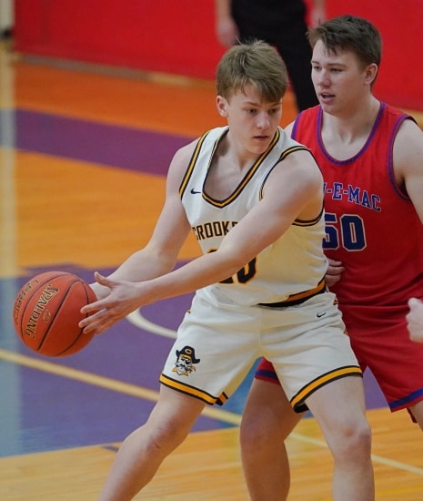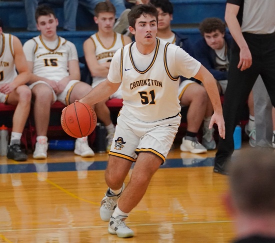 Win-E-Mac started the second half with a Braylon Hamre three-pointer and a Ryan Kangas two-hand dunk for a 54-42 lead. Crookston answered with a Michaelson free throw and Winjum three-pointer to get within a 54-46 deficit. Win-E-Mac built a 62-52 lead before Crookston’s Michaelson made a three-pointer to get within a 62-55 deficit five minutes into the half. The Courneya brothers took over with Joe scoring a basket, and Justin added five straight points for a 69-55 lead. Win-E-Mac continued to add to their lead and took an 84-64 lead. Crookston’s Nicholas scored five straight points to bring the Pirates within an 84-69 deficit, only to have Kangas score four points for an 88-69 lead with four minutes remaining. Crookston chipped away at the deficit in the final four minutes, but the deficit was too much, and both teams went to the bench in the final two minutes as the Patriots won 94-82.