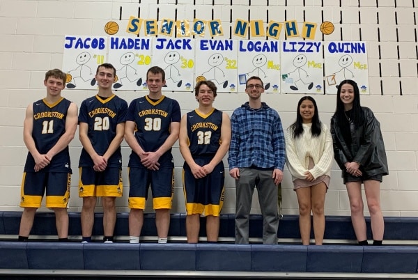 The Crookston Pirate Boys Basketball team scored four points in the final 52-seconds of the game to beat the Roseau Rams 73-70 on Senior Night in a Section 8AA game played in Crookston.