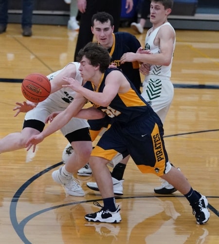 Roseau would continue to battle back and took a 9-8 lead after a Lund three-pointer almost halfway through the half. The teams started to pick up the offense for the rest of the half. Crookston regained the lead with a Ryan Abeld layup and a Garmen basket. Roseau battled back to tie the game at 15 with 5:30 remaining in the half. Crookston’s Hesby made a three-pointer to give Crookston the lead for the rest of the first half. Crookston led 18-17 when Hunter Nicholas scored in the paint, and Hesby added five points for a 25-17 lead. The Pirate kept the lead the rest of the half and took a 32-27 lead into halftime.