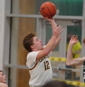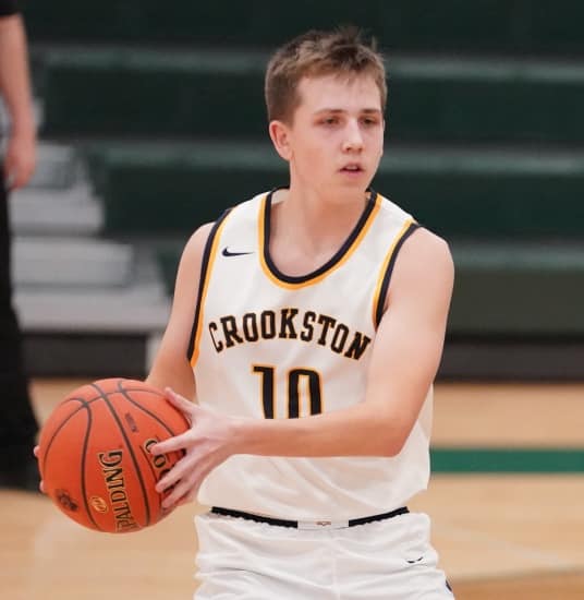 The second half was a rough-and-tumble second half as both teams played more physically and aggressively, which meant more fouls. Â Roseau slowly chipped away and got within a 45-37 deficit four minutes into the half before Crookston’s Jack Everett made back-to-back three-pointers for a 51-37 lead. Â Roseau cut the Crookston lead down to single digits one more time after a 5-0 run to get within a 57-48 deficit with eight minutes left in the game. Â Crookston responded with four straight points from Giese, and after a Roseau free throw, Abeld added a basket on a nice drive to the basket for a 63-49 lead. Â Crookston hit some free throws in the final minutes and held on for a 74-63 victory.