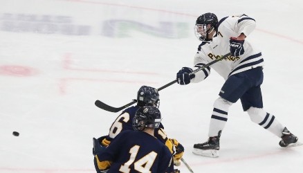 The Crookston Pirate Boys Hockey team trailed by a goal after the first period, but Eric Delorme scored a goal in the third period and added another in overtime to give his team a 2-1 victory over the Fargo North Spartans in the first day of the Thief River Falls Ralph Englestad Holiday Classic in Thief River Falls.