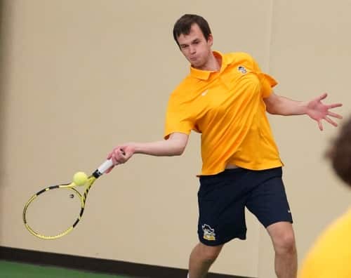 The teams only had three courts to use because of various tennis lessons, University of North Dakota Women’s Tennis practice, and other activities that were planned at the facility, causing the match to take longer than usual.Â