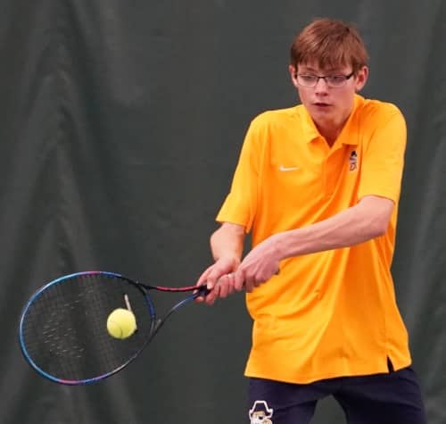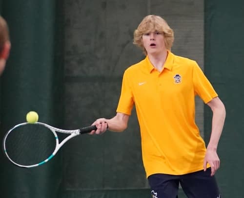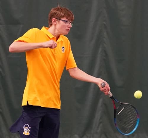 Crookston’s Isaac Thomforde won a long, hard-fought battle at fourth singles in three sets.  Isaac lost the first set 6-4 before bouncing back to win the second set 6-4, forcing a third and final set.  Isaac outlasted his opponent and won the third set 10-6 to bring Crookston within a 2-1 deficit.  Thomforde improves to a perfect 7-0 on the season and is the only Pirate regular that hasn’t lost a match this season. “Isaac never gave up and competed hard the entire match,” said Pirate Coach Pat Janorschke. “He has really improved again this year. He gives it 100 percent every time he plays and that is all we can ask for.”