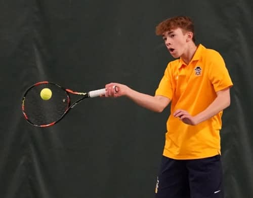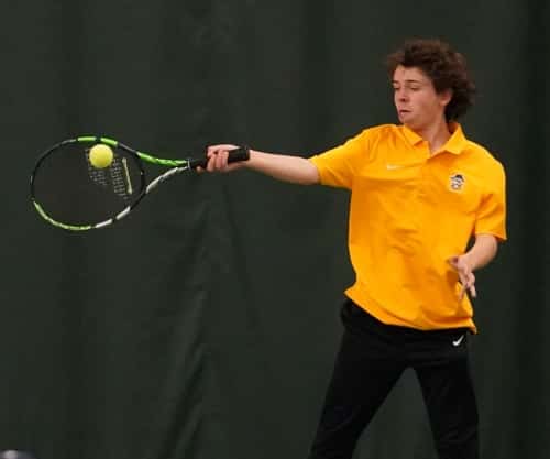 On Tuesday, the Crookston Pirate Boys Tennis team was supposed to play Thief River Falls, and Detroit Lakes in a triangular in Thief River Falls, but the cold weather forced a few changes.  Thief River Falls was able to secure a few courts at Choice Fitness in Grand Forks, so the teams played a match that lasted over four hours, and the Thief River Falls won 5-2.