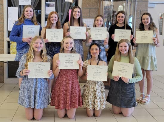 Abigail Bruley, Avery Mathews, Mackenzie Funk, Mady Knutson, Calleigh Fanfulik, Kendra Brekken, Avery Trudeau, Morgyn Larson, Leila Bautista, Makenna Kopecky, Emily Shea, and Kayla Brekken