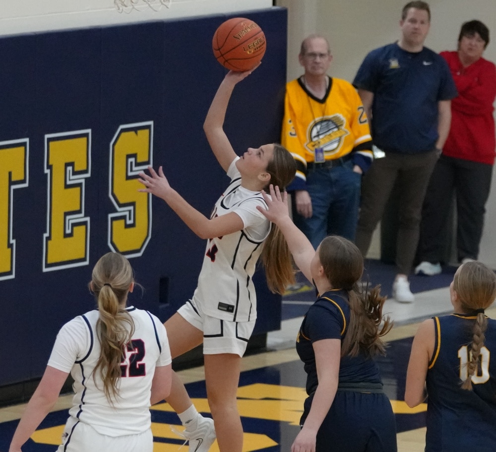 Fertile-Beltrami responded with a 12-0 run behind four more points from Stueness, three points apiece from Indigo Oistad, and Mya Erickson, and a basket from Kenna Flakne for a 26-14 lead. The teams played even the rest of the way and Fertile-Beltrami led 32-20 going into halftime.