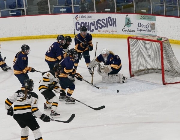 The Crookston Pirate Girl’s Hockey team battled the #1 Warroad Warriors in the Section 8A Championship game on Thursday night in Warroad. The Warriors used their speed and took an early lead while never looking back on their way to winning the Section 8A Championship by a final score of 8-0.