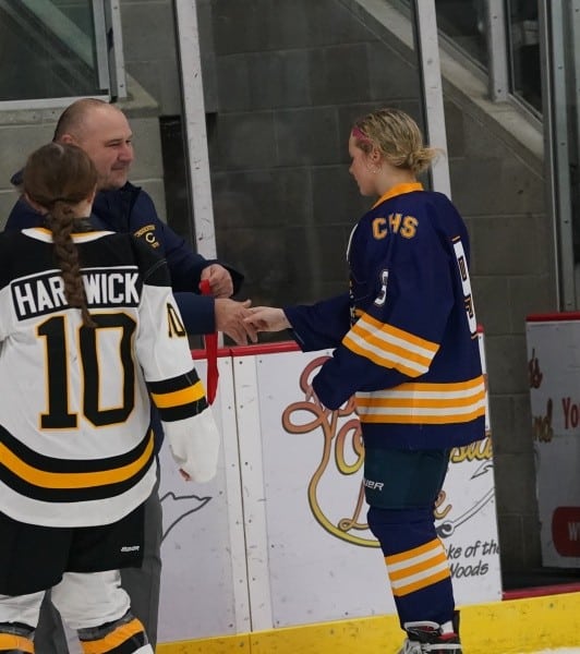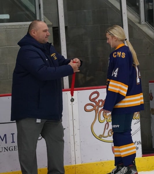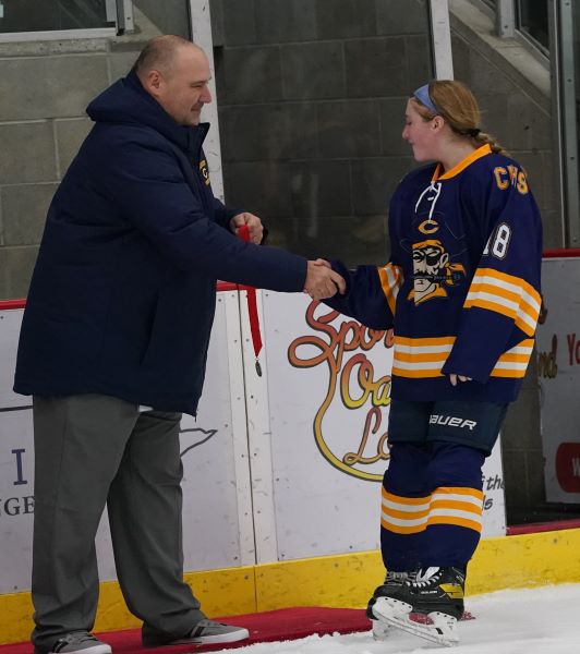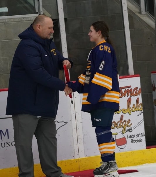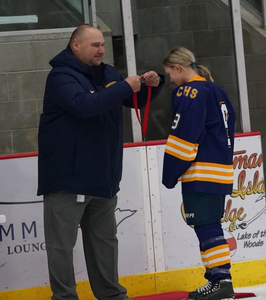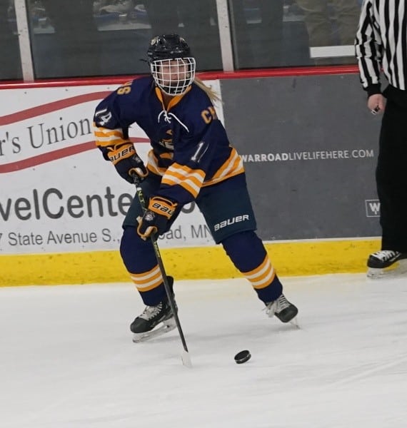 Crookston could not score on the Power Play to start the period, and the Warriors returned to full strength. The Pirates did get one shot on goal from Addie Fee, but that would be all. Kambelle Freije played excellent throughout the first eight minutes of the frame, saving everything and even stopping the Warriors on a breakaway try. The Pirates were able to draw another Warriors penalty midway through the period, giving them their second Power Play of the night. However, it provided Warroad with a jolt on offense, and they would end up scoring a shorthanded goal to take a 5-0 lead. “We wanted to come out in the second period and try to shut them down and then chip away at their lead,” said coach Meyer, “they gave us no time or space in the game. They’d have two then three girls on us, you couldn’t hesitate, or they’d be on your, stealing or knocking away the puck.” Warroad’s first goal in the period seemed to open the floodgates, and after that, the Warriors would score two more goals fifty-two seconds apart from Lexi Kirkeby and Rylee Bartz. Warroad senior Talya Hendrickson registered an assist on the Bartz goal giving her 300 career points. Neither team would score the remainder of the period, and the Pirates would register the one shot on goal from Fee right at the beginning of the period on the Power Play. Warroad had outshot the Pirates 46-2 through the first two periods, and Crookston had limited chances offensively. “Kambelle played well,” said Meyer, “they threw everything at her, and she gave up goals, but she played her heart out tonight.”