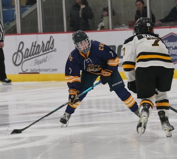 It took 3:34 into the opening period before the first whistle was blown, and the bad news for the Pirates was that the whistle was blown for a penalty on Cassie Solheim for body checking, giving the Warriors the first Power Play of the game. Warroad’s top line is hard enough to stop at even strength, but the Warriors showed exactly why you don’t want to give them a Power Play, as Talya Hendrickson quickly scored, giving Warroad a 1-0 lead at the 4:03 mark of the period. A little over a minute later, the Warriors would strike again. Kaiya Sandy would pick up a loose puck in the neutral zone, skate up the right side, and beat Pirates goaltender Kambelle Freije making it 2-0. The Pirates were without Reese Swanson in this game after she broke her hand and could not suit up. That seemed to affect Crookston, and they struggled to get any offense going the entire period. The Warriors were relentless, spending almost the entire frame on the Pirate’s side of the ice. Warriors senior Talya Hendrickson (who has committed to play at Bemidji State) would add two more goals before the period was over, completing her hat trick as the Warroad student section tossed their caps onto the rink with a 4-0 lead. “That was tough for us,” said Crookston head coach Emily Meyer, “we didn’t want to take any penalties, but we did early, and they capitalized, scoring the power play goal plus one a minute later, they scored again. It took some of the wind out of our sail. It’s hard to dig yourself out of a 4-0 deficit against a team like them. We wanted to play good defense, and I think they got into our heads a little bit and just kept coming at us.” The Warriors would be called for a late penalty on a high sticking call, giving the Pirates a Power Play that would roll over into the second period. When the first seventeen minutes were all said and done, it was Warroad in front 4-0, and they were outshooting Crookston 19-1.