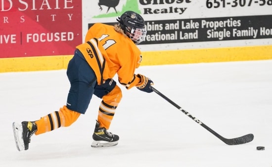 Reese is very versatile for us,” said Crookston head coach Emily Meyer, “great skills of skating, moving the puck, and a force in front of the net.” Swanson didn’t take long to make a prophet of her coach when she scored just over a minute into the period with a backhand past the Stars goalie to make it 1-0. “I was going into their zone with Taylor,” said Swanson, “I gave her a pass, and then when I was in front, she returned the pass on my backhand. I let it go, and luckily, it went in.” Crookston hasn’t enjoyed many leads during the first period, so it was an excellent start to this game. “Yes, it was,” said Meyer, “It gave us a jump, and we were off and running.” At one point near the period’s halfway mark, the shots were even at six apiece. Crookston ran off the next seven shots and continued pressure on Haylee Proulx, the Stars goalie. “We started pushing them in their offensive zone,” said Meyer, “Everybody was applying the pressure, and we forced them into some penalties, which turned into a five-on-three power play for us toward the end of the period.” The goal came with 2.4 seconds left in the period as Emma LaPlante received a pass in front from Jocelyn Field and fired it past Proulx to make it a 2-0 lead for the Pirates just before the buzzer ended the period and a Crookston lead. “I liked how we responded to the loss at Northfield,” said Meyer, “the girls didn’t hang their heads today and came out and took care of business, playing pirate hockey.”
