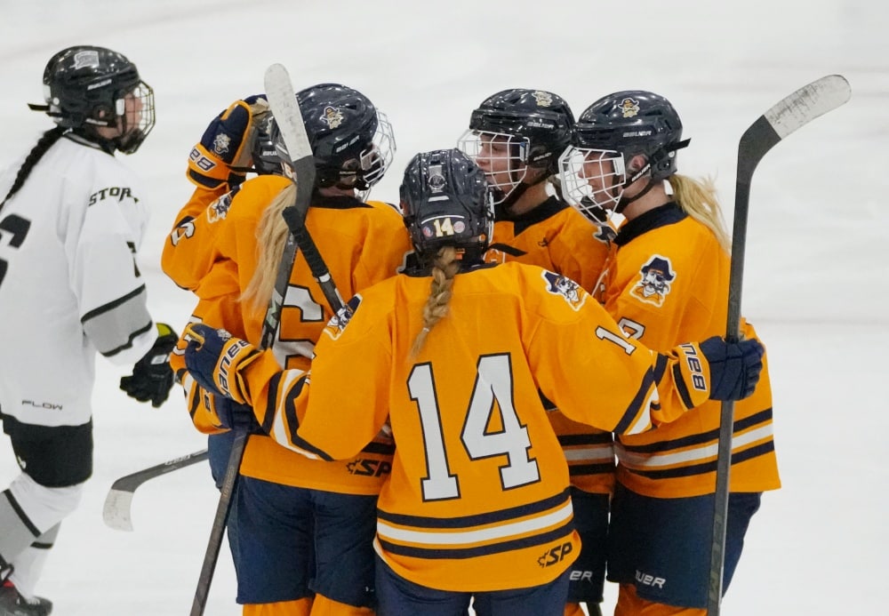 The Crookston Pirate Girls Hockey team took a one goal lead late in regulation, but the North Shore (Two Harbors, Silver Bay, and Duluth Marshall coop) Storm answered less than a minute later and scored 32 seconds into overtime to get a 3-2 victory on the second day of the Hockeytown Holiday Classic in Warroad.