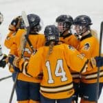 North Shore didn’t waste any time in overtime as they got a shot on goal and the rebound went behind the net. They got another shot on goal, and the rebound came out in front, and Costly was there again and fired a wrist shot into the net to give the Storm a 3-2 victory.