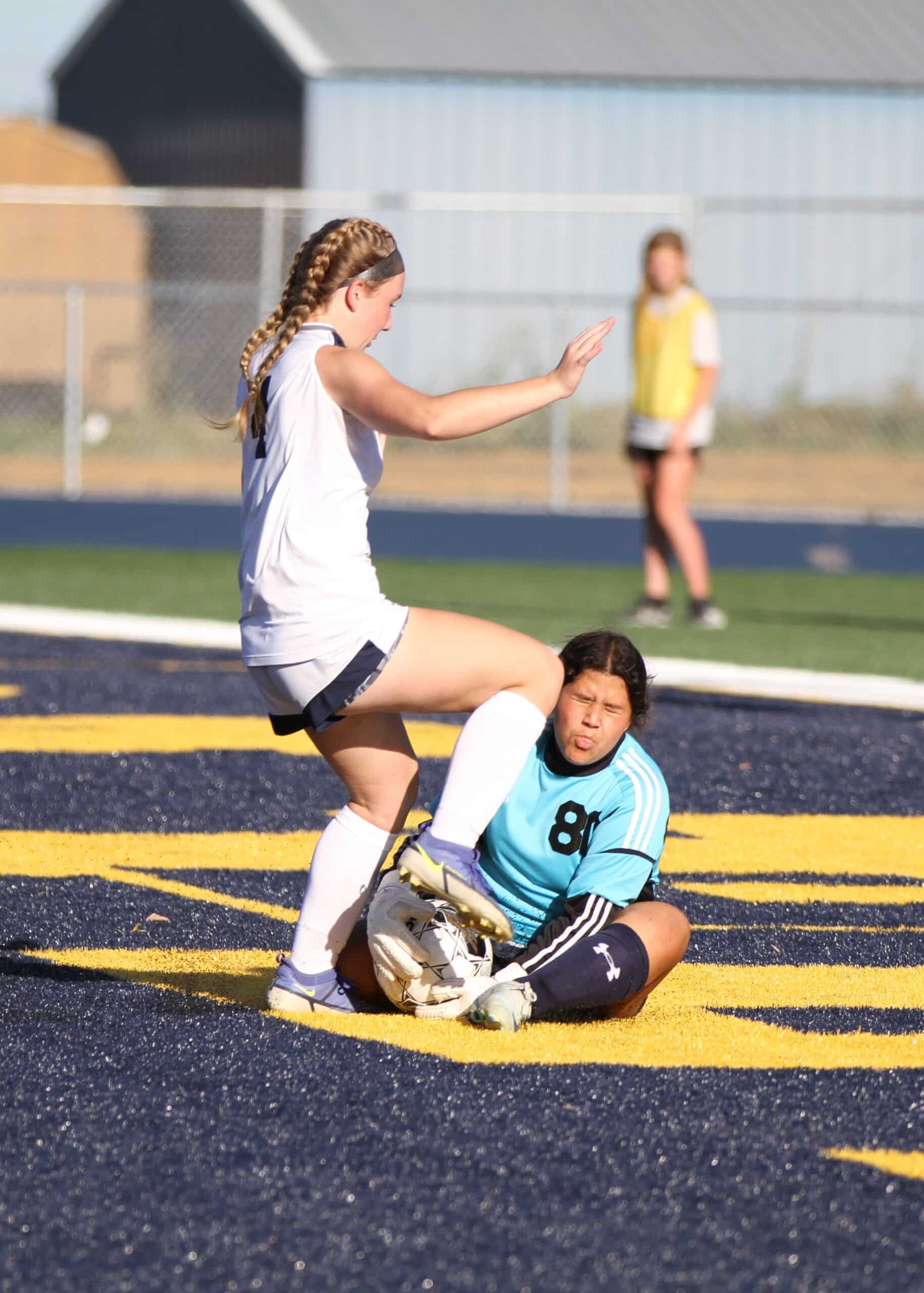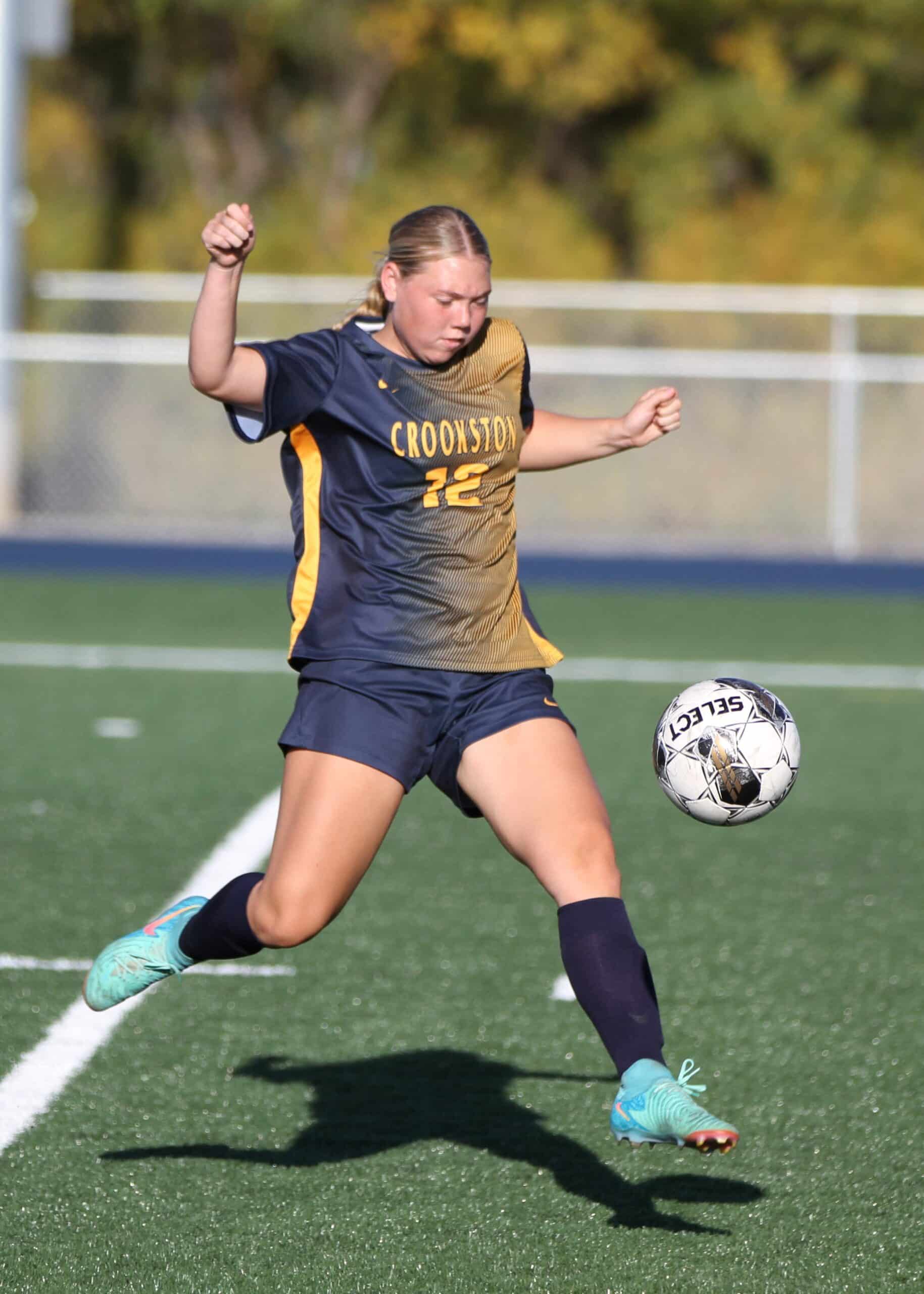 Crookston looked to move the ball early, getting the ball towards the net and Hibbing goaltender Aella White, but after the first 5 minutes, Hibbing began to move the ball down the field with more efficiency. They got a corner kick in the 9th minute but could make nothing of it. Crookston got two corner kicks in the next 10 minutes but came up empty-handed on each of them. Hibbing, after lots of attempts that were saved by Skyuh Burnette, finally were able to break through, scoring in the 28th minute on a strike by Veyda Friend. Crookston was only able to get one shot on goal in the half, which was saved by White. The Bluejackets took the 1-0 lead into the half.