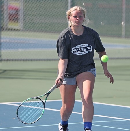 Halle Winjum (an eighth-grader) won the title at third singles. Halle Winjum dominated most of her sets on her way to victories over girls from Moorhead, Hibbing, and Perham. “Halle played well and ran into a very good opponent in the championship and couldn’t pull it off,” said Coach Brekken. “She was happy with how she played and she continues to play well for us.”