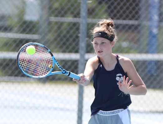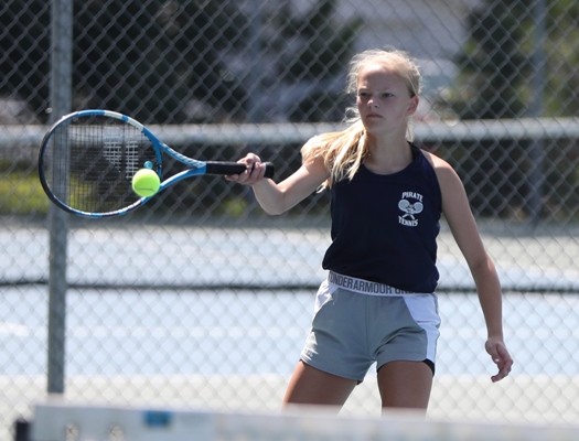 Crookston picked up their first win of the season with a 4-3 victory over the Aitkin Gobblers. Catherine Tiedeman and Hannah Lindemoen won their singles matches and doubles teams of Hayden Winjum/Emma Osborn and Halle Winjum/Emma Gunderson won their matches. “It was nice to have a balanced attack with two wins coming from singles and two more in doubles,” said Coach Brekken. “Hannah (Lindemoen) played well and had a nice win at third singles in a three-set match. She hit the ball well today.” With the Pirates getting their first matches of the season under their belts Coach Brekken said they have some things to work on. “We have a lot of the things to work on, but that is expected after the first matches,” said Brekken. “We need to work on conditioning and consistency and that stuck out the most. The girls played well and it is a good place to start the season.”