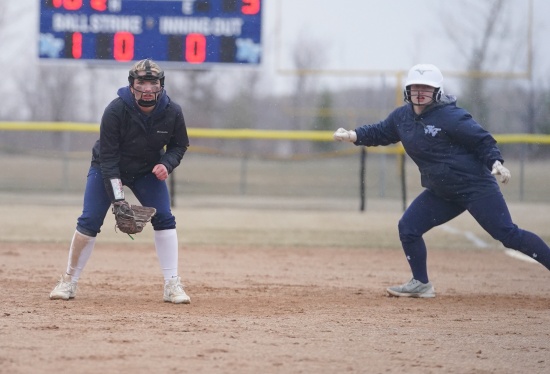 The Crookston Pirate Softball team braved snow falling throughout the game and scored three runs to start the game, but nine errors were costly as the Northern Freeze won the game 13-6 in a game played in Newfolden.