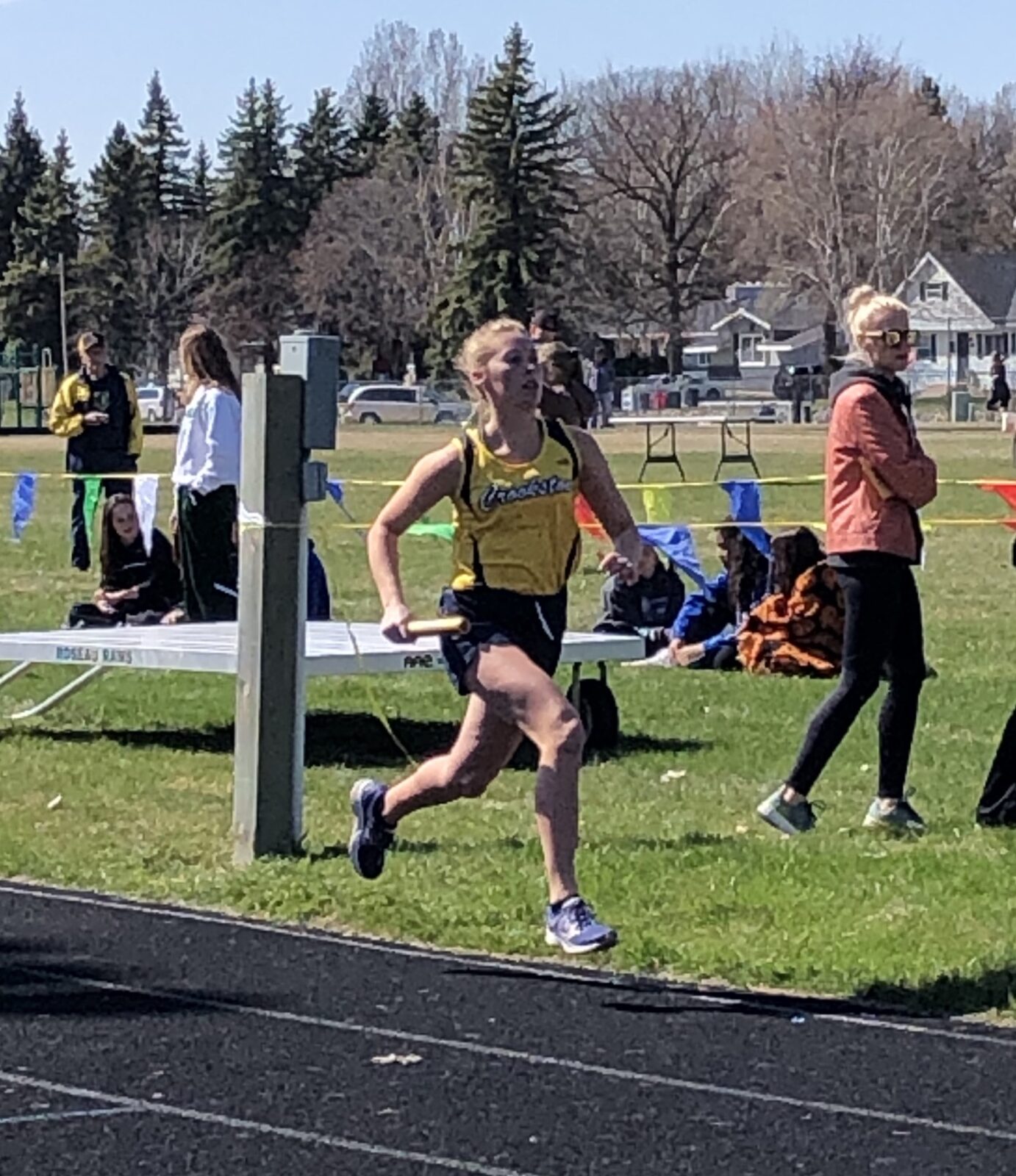 Jada Dillabough also contributed to Crookston’s top finishes by taking third place in the shot put with a throw of 34-09 feet and third place in the discus with a throw of 91-09 feet. “All the girls did very good,” summarized Boll. “We had a lot of personal bests in this meet. The cards just didn’t fall where we would’ve liked them. I’m very happy with how they performed and how they finished the race.”