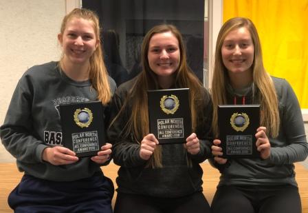 Rachel Hefta, Kylie Solheim and Hailey Seaver with their All-Conference awards