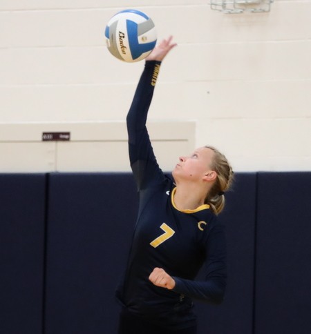 The third set was a tight battle with ties at 6, 7, 8, 14, 16, 17, 19, 20, 21, and 23. Bagley finished the set strong with back-to-back aces from Cori Bonik for a 25-23 victory to take a 2-1 lead. “I think our serve receive struggled and the communication on the serve receive,” said Coach Stopa. “There were a lot of close ones, on who was going to get it.”