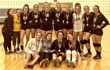 The Crookston Pirate Volleyball team with their 1st place medals (Picture by Lacia Hanson)