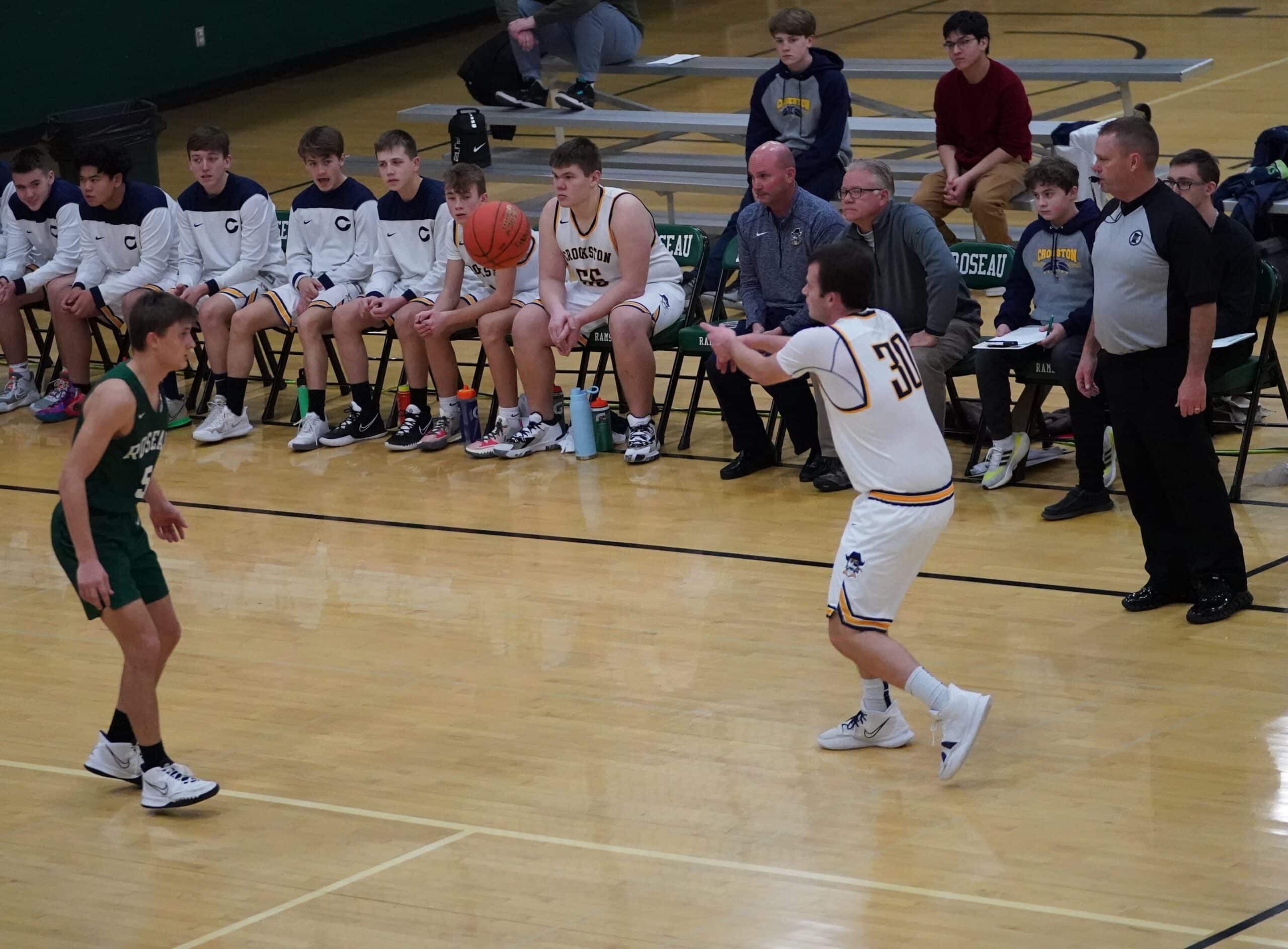 The Crookston Pirates Boys Basketball team traveled to Roseau on Tuesday afternoon for a game against Section 8AA opponent the Roseau Rams. The game was played in the Roseau Elementary Gym. Both teams were looking for a much-needed win, but it was the Pirates that used a hot start and big first-half run on their way to a 67-47 victory. āI thought we were able to get a few guys going early, and then other guys were able to step up,ā said Pirates Head Coach Greg Garmen. āThere was a lot to like and one of the keys to the game is making shots, and we were able to do that.ā