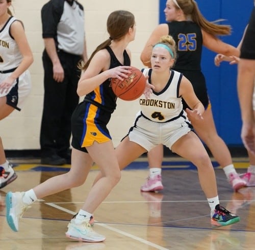 Both teams would score nine points apiece in the final four minutes and Crookston held on to win 61-43.