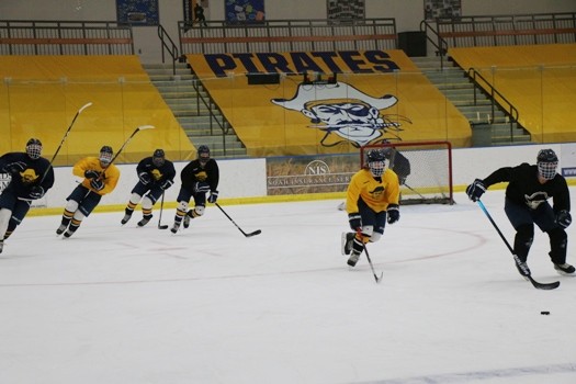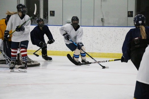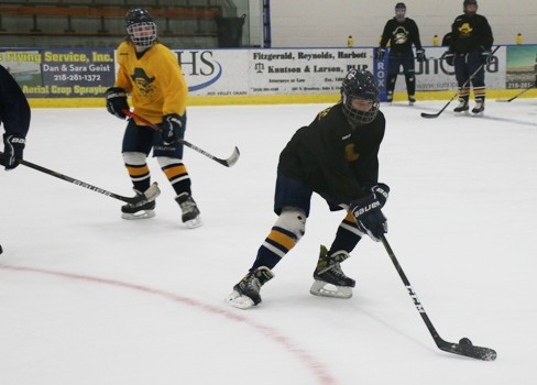 Senior Catherine Tiedemann said it was nice to be back on the ice. “It was different for sure,” said Tiedemann. “But at least we’re still able to get on the ice and play. We scrimmaged the whole practice, just getting back out there.”