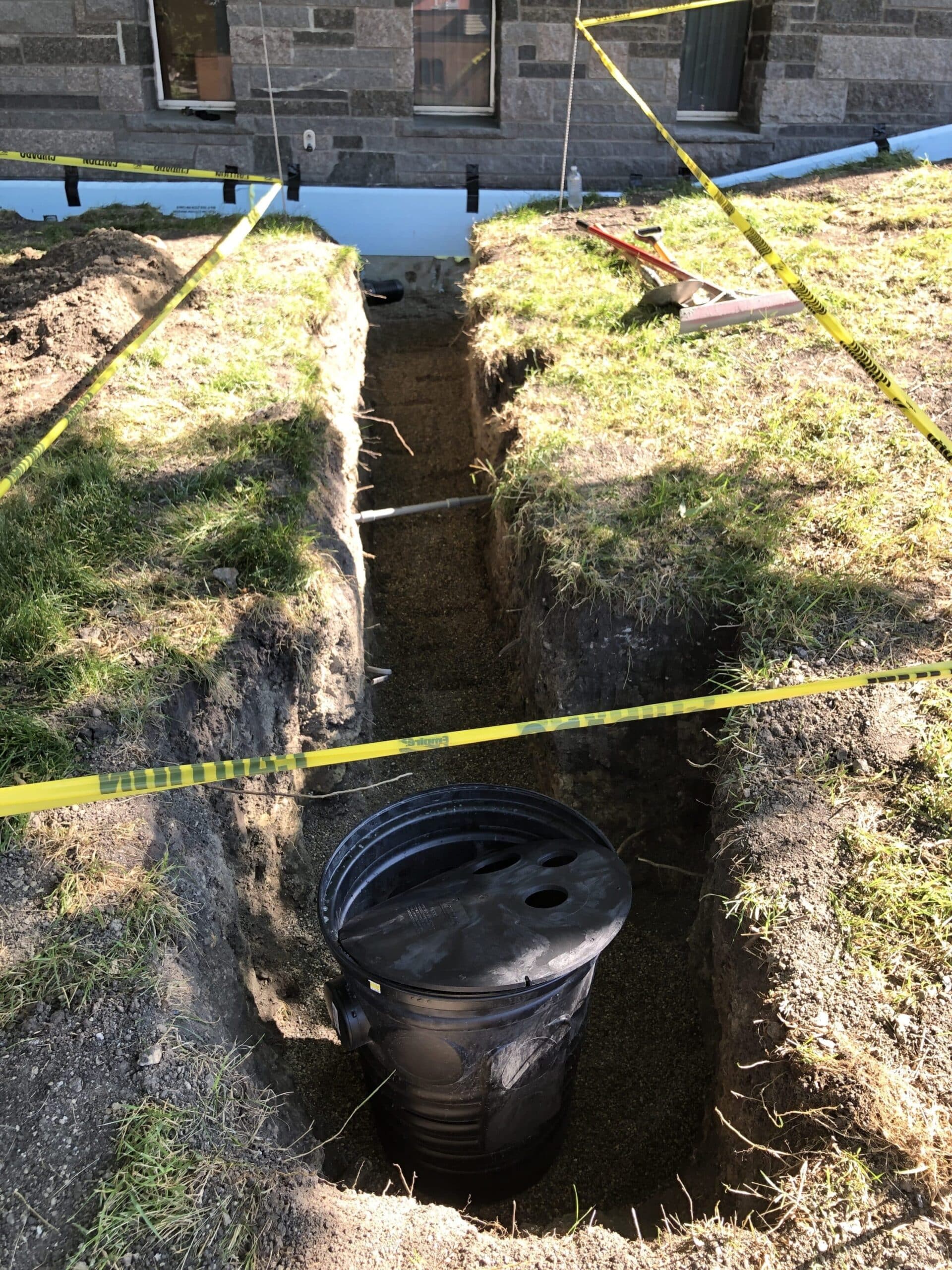 Construction and the excavation process of the building began last week, where they stripped down the wall and began the process of drying the room out. They then started working on the exterior of the building, where they removed the old membrane and cleaned the granite before attaching a new foundation membrane with a waterproof seal to prevent any more water from seeping in when they started working on the inside of the building. The other part of the excavation process is creating a drain field around the building that will be backfilled with pea rock and drain tile to move water away from the building to multiple sump areas placed around the building, which will cause the water to seep back into the ground. “They’re going to start backfilling with pea rock, and there’s going to be drain tile put in there, so any water that would be along the foundation in the future will be taken away from the building into sump barrels,” Langlois explained, “So, the all the water will run away from the building because it’s grated to do so.” Langlois explained that due to the ground being so saturated from the melted snow and previous storms over the spring and beginning of June, the water had nowhere to go other than into the building’s foundation, which leaked into the office wall.