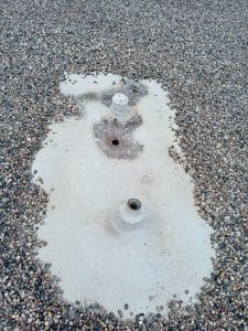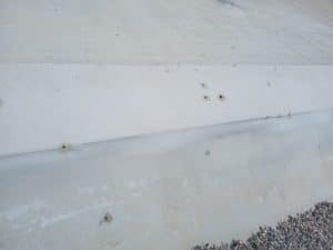 Other areas of the roof do not have rock placed on them due to the steepness of the structure, and the hardcover has been penetrated by hail and other natural causes. Staff members have attempted to patch holes in recent years, but the damage cannot be repaired with those simple patch-ups.