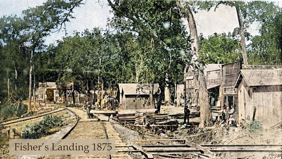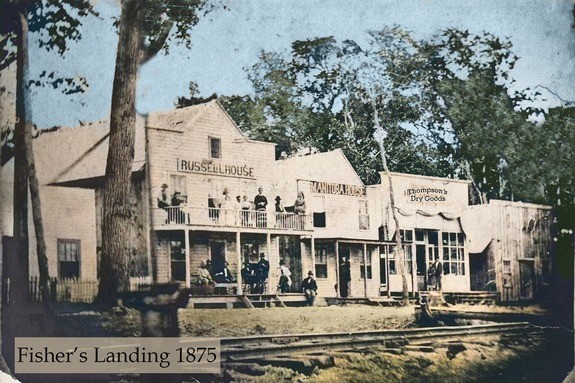 These are the only known photos of Fisher’s Landing, on the riverbank below the present village. They are colorized to provide better contrast as the original black and white photos are murky.