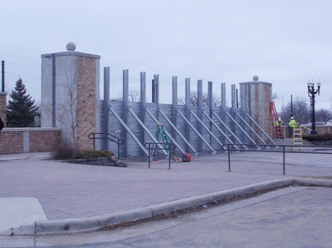 The entrance into Riverside Park on N. 1st St. is closed as crews have installed the floodwall closures.