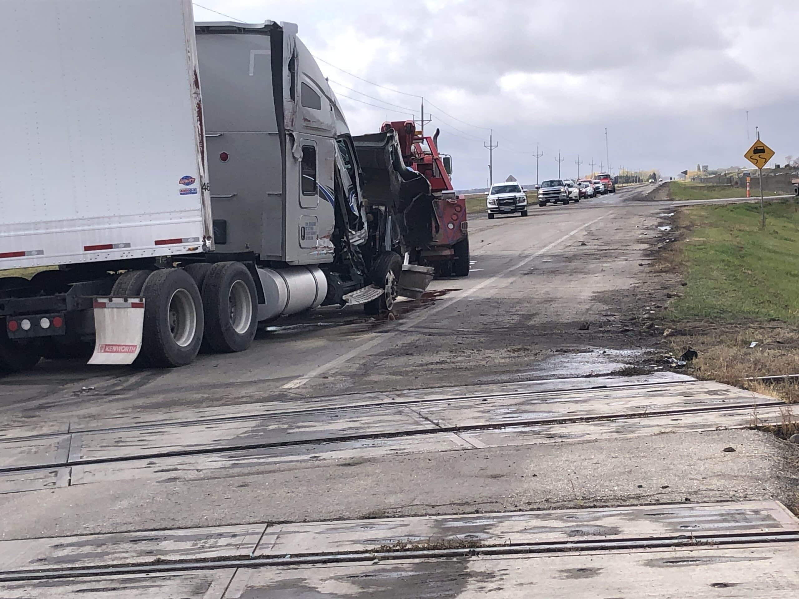 The second accident occurred at approximately 11:30 a.m. south of American Crystal Sugar in Crookston near the intersection of County Road 9/KT and Hwy 75. This accident involved a semi and a Minnesota Northern Railroad Train. The semi failed to yield to the train at a crossing controlled by human flaggers and was struck by passing train cars. The train was traveling at a slow speed. The driver of the semi, David Lietz of Harwood, ND sustained no injuries and did not seek any medical attention. County Road 9 was closed off for some time until the semi and train were removed. The semi sustained disabling damage and had to be towed from the scene. The train cars sustained minimal damage. Lietz was cited for Failure to Stop for a Human Flagger at a Railroad Crossing. Assisting agencies were Minnesota State Patrol and Crookston Police Department.