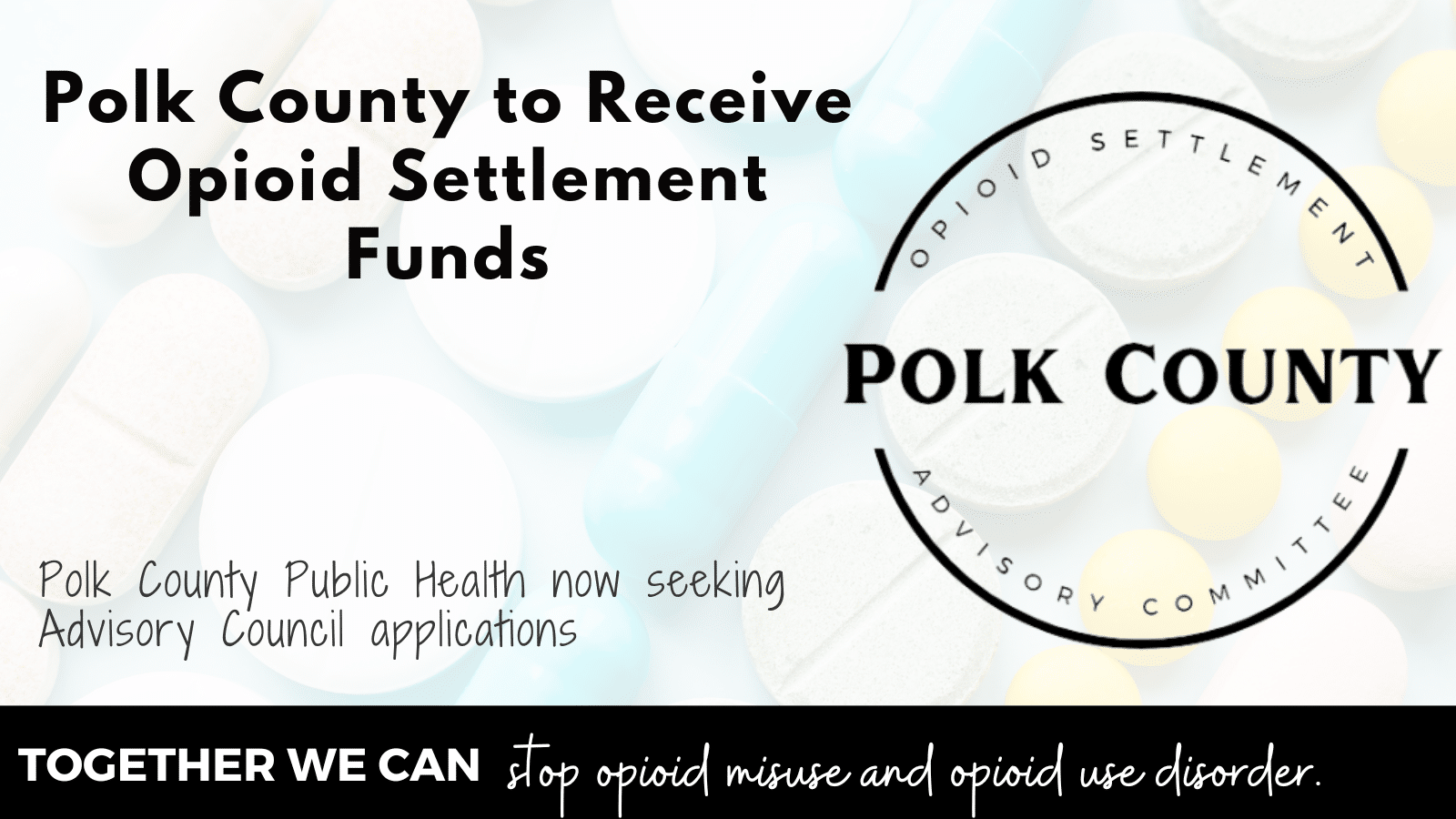 Polk County’s share of the settlement is $1.9 million, to be dispersed over 18 years. The harms of alcohol, other drugs – including legal and illegal opioids, and suicide continue to impact individuals and families in our communities. The funds can be used for prevention, treatment, recovery, harm reduction, research, and/or training.