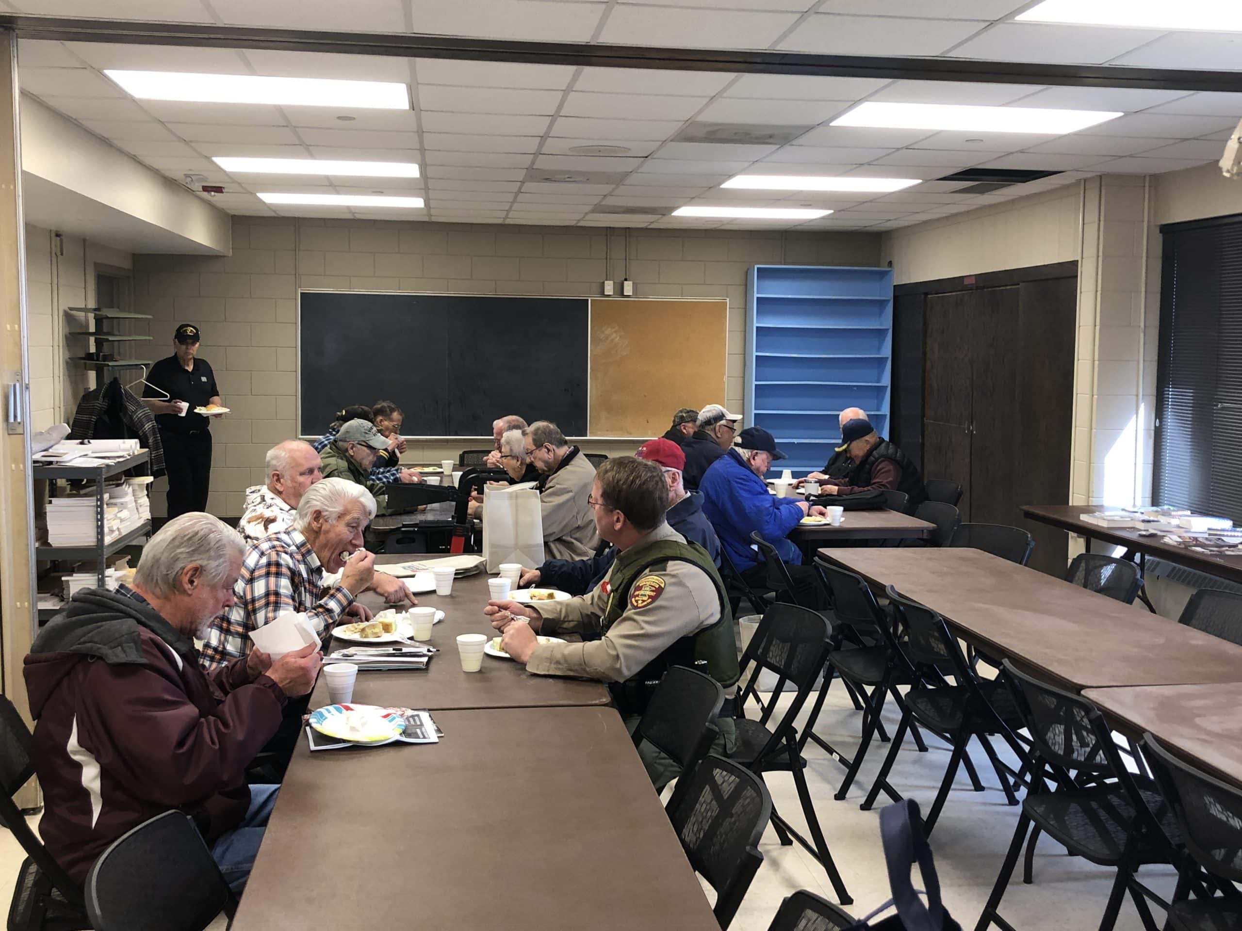 The veterans were served a free lunch of pulled pork and egg salad sandwiches, courtesy of the Irishman Shanty, along with other refreshments like donuts, pastries, and coffee.
