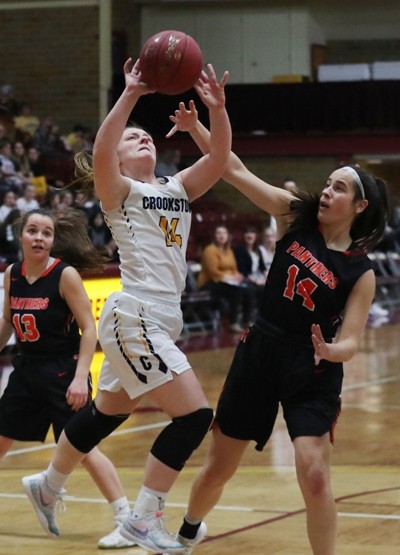 The Crookston Pirate Girls Basketball team used an 18-2 run in the middle of the second half and pulled away for a 63-48 victory over the Park Rapids Panthers in a Section 8AA Girls Basketball tournament game played at Concordia College in Moorhead.  Crookston pulled off their second “upset” of the tournament after knocking off #4 seed in the north Dilworth-Glyndon-Felton on Thursday and the #1 seed from the South Sub-section Park Rapids on Saturday night.