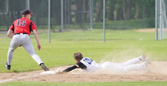 Red Lake County’s Keegan Schmitz and Gunnar Halvorson were hit by a pitch, and a walk to Blake Breiland loaded the bases. Ashton Fredrickson singled in a run, and Will Gieseke doubled in two runs. The Rebels scored a couple more runs on a double steal and wild pitch.
