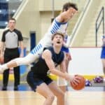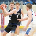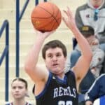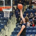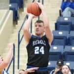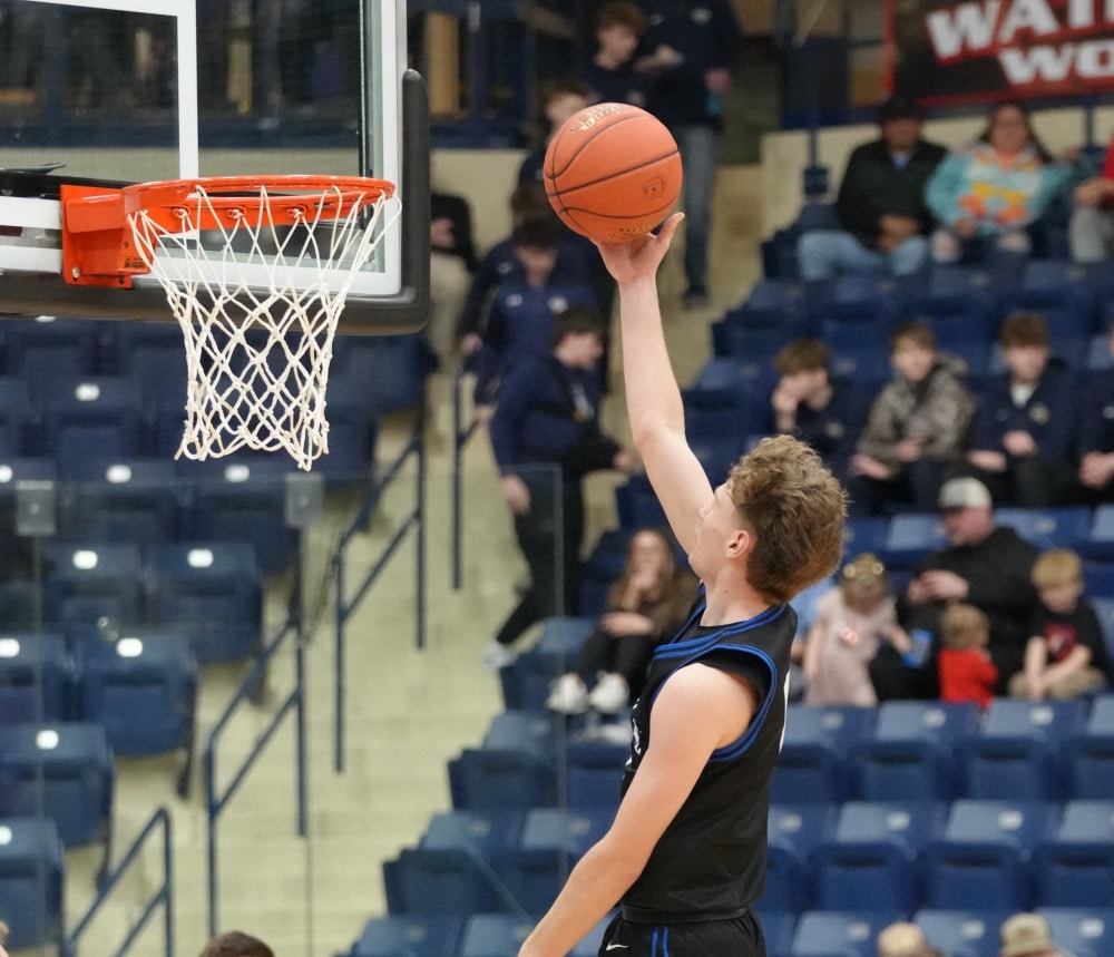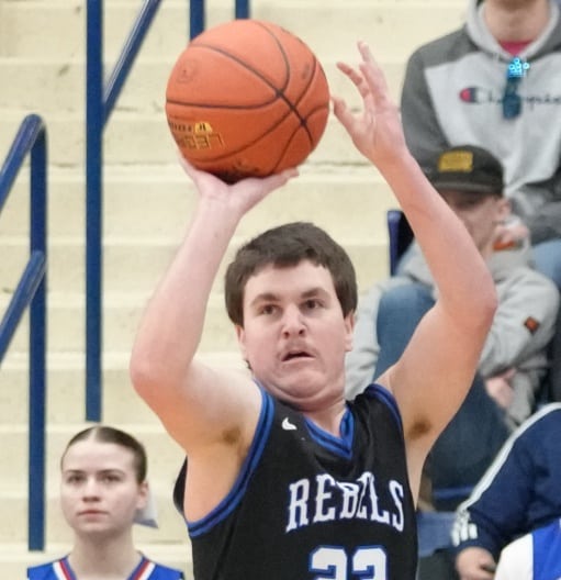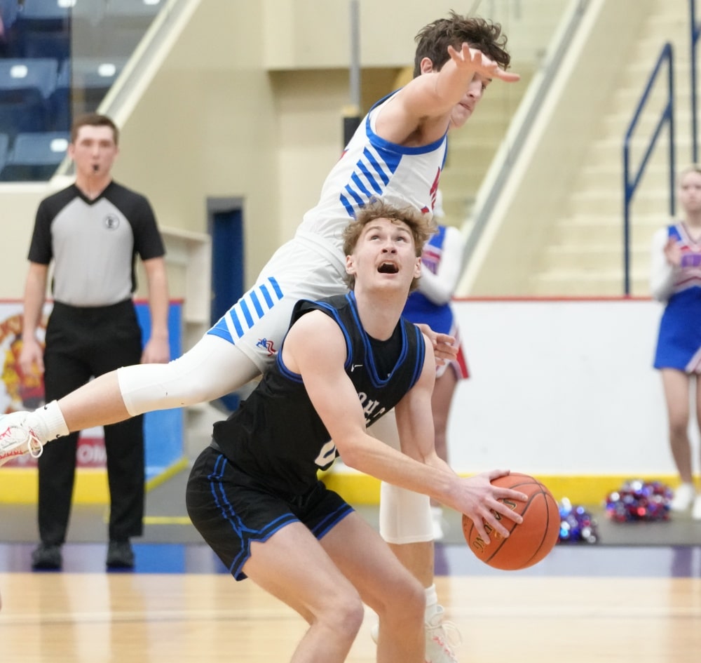 Red County started the second half on a 6-0 run with baskets from Will Gieseke, a Connor Duden dunk, and a Ben Gullingsrud basket for a 59-30 lead three minutes into the half. The teams exchanged baskets for the next five minutes, and the Rebels led 70-39. Red Lake County’s Duden made a basket, and Suchy followed with another three-pointer, a free throw, and another three-pointer (his ninth three-pointer of the game), and the crowd went wild, celebrating a new school record of nine three-pointers in a game, and the Rebels led 79-39 with 5:41 remaining. With running time in play for the final minutes of the game, it flew by, and both teams went deep into the bench, and Red Lake County won the game 87-39.