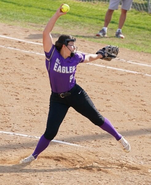 East Polk started the inning with a Kiana Tadman line drive over the right fielder’s head, and as she rounded second base, she tripped over the base, and the Eagles tagged her out. Tadman was injured on the play and had to be carried off the field. Paige Breitbach followed with a single before the next two batters flew out.