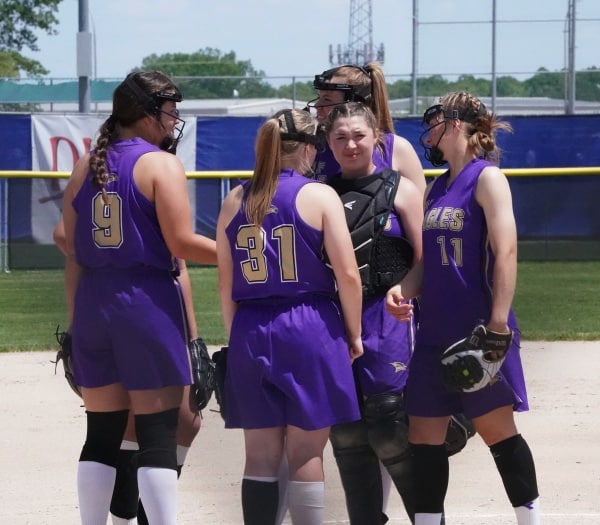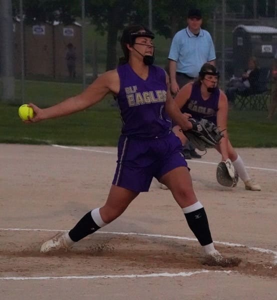 Each team would go scoreless in the sixth inning, carrying the game over into the final inning in a tie at 1-1. The Flying Dutchmen had a golden opportunity in the top of the seventh inning to take the lead, as Morgan Pap drew a leadoff walk, and Maddie Feikema slapped a double down the left-field line to put runners on second and third base with just one out. Eagles Coach Ben Hanson would take a mound visit for the Eagles and whatever he said seemed to work, as Bella Amiot would strike out the next two hitters and get the Eagles out of the jam.