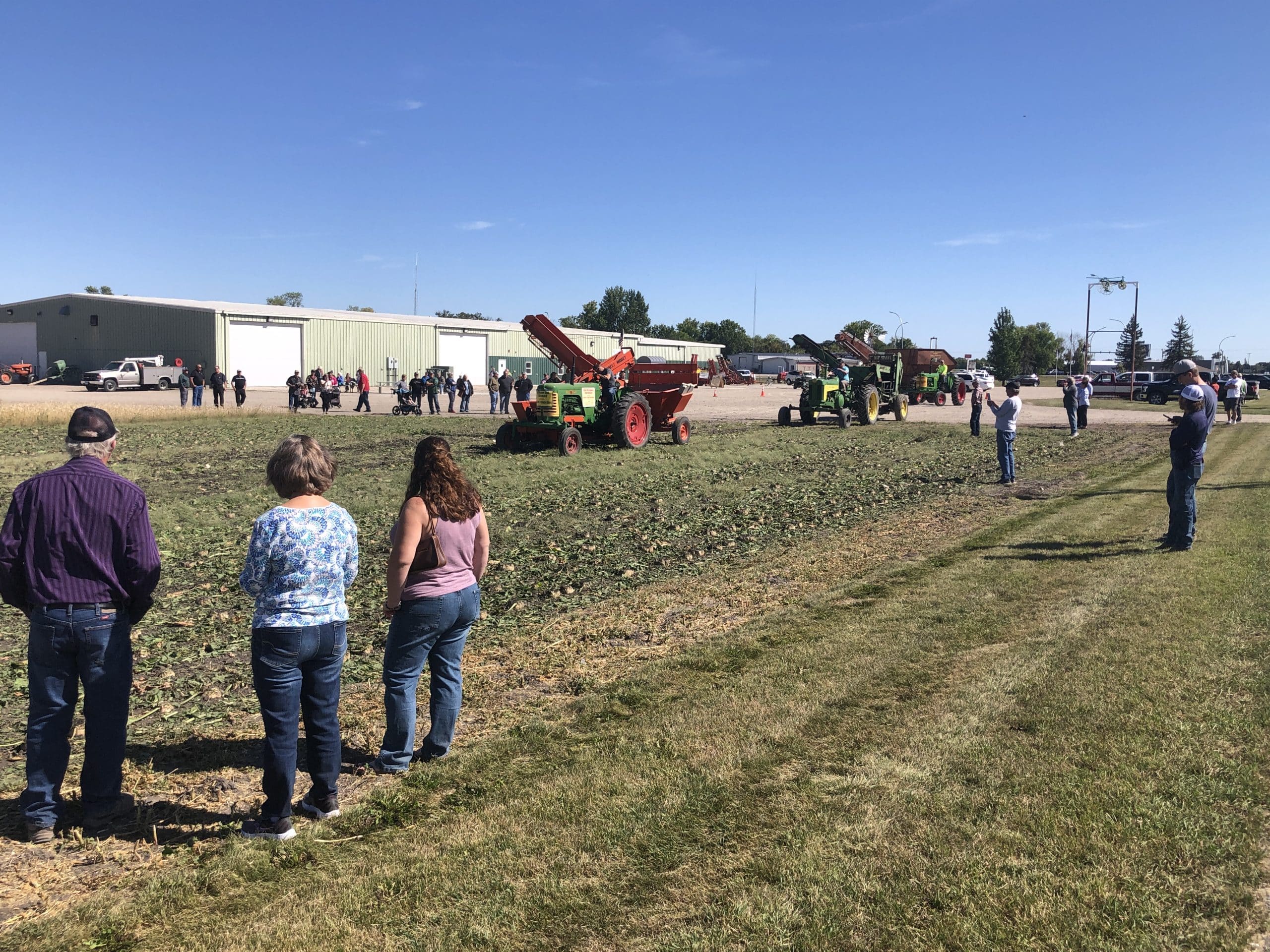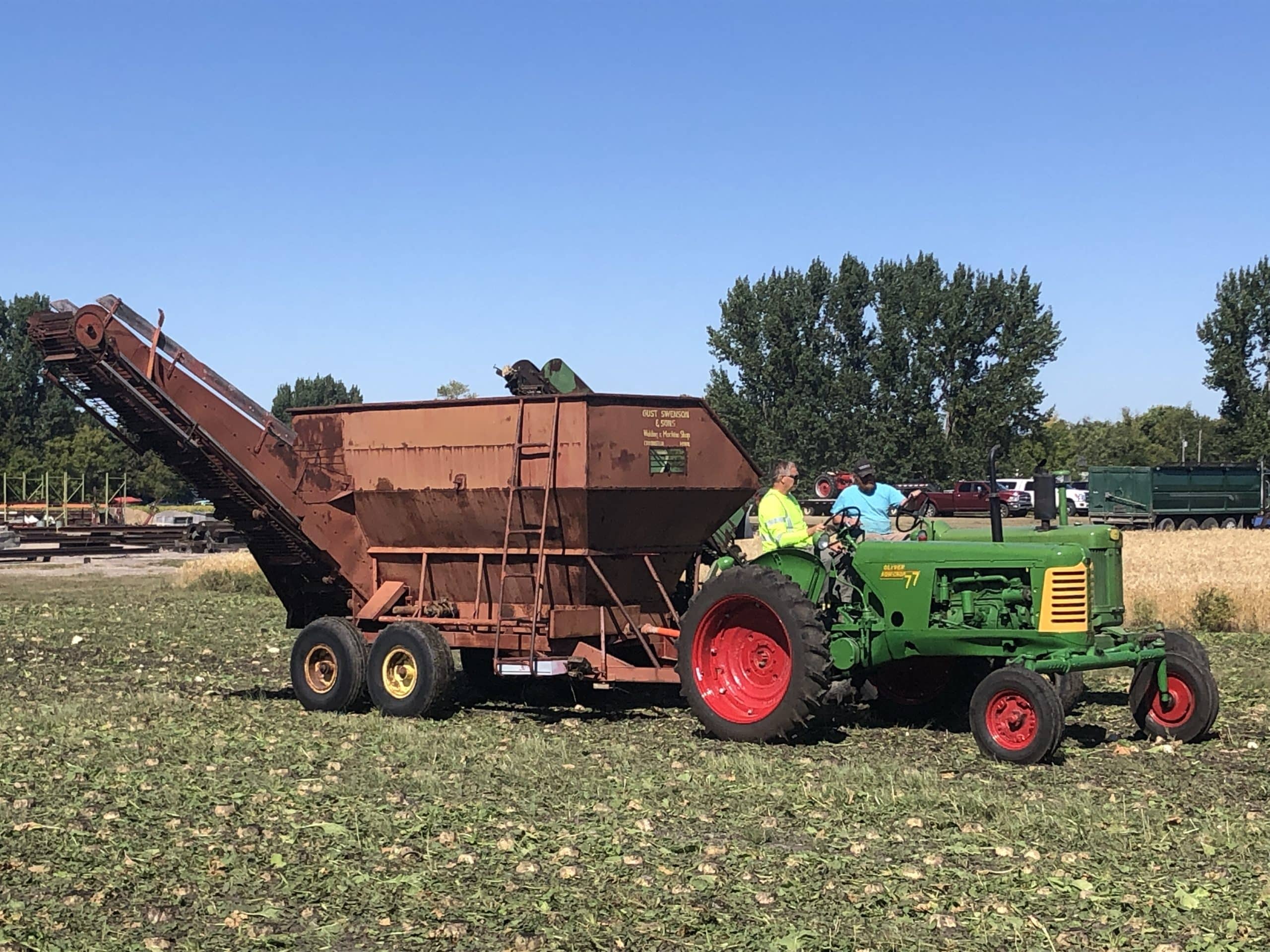 The Red River Valley Sugarbeet Museum held its 17th Annual Harvest Festival today where they held demonstrations of harvesting sugarbeets and grain bushels with older farming equipment. Along with the demonstrations, there were various tractors and other farming equipment from the early to mid-1900s on display throughout the museum. Behind the museum, multiple tractors were lined up in preparation for the Tractor Pull at noon, where spectators lined the hill to watch. Barnyard Bites was also there to provide lunch for visitors. The Festival was held in honor this year of Paul Dragseth.