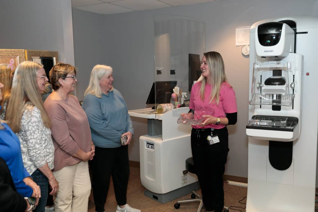 Alisa Leas, R.T.(R)(CT), RDMS, RVT (ARRT), gives area women a tour of RiverView’s new state-of-the-art, 3D mammography suite during a free breast cancer awareness event in October.
