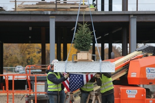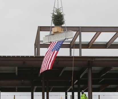 The 20,000 man-hours already put into the construction is the equivalent of more than 9.5 years of work for a single individual. The tree lifted into place with the beam is a tradition dating back to when structures were built entirely of wood. “We always put a tree on the top of it,” said Toso.  “In the olden days, if you will, construction was primarily out of wood, so the tree was symbolic to the tree goods for all of the fallen trees it took to build the structure.  Things have changed over time.  Structures are primarily metal, but the tradition carries on.”